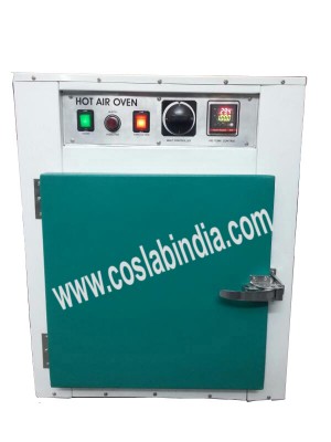 Outside made of mild steel with powder coated paint. Inside made of anodized aluminium /stainless steel. The double walled door asbestos gasket lining is fitted on heavy brass cast chromium plated hinges and has a latch type lock. Temperature can be controlled from few degrees above ambient to 250°C by thermostat. Heating elements are placed in the ribs at the bottom and sides. Built in L-Shape prismatic thermometer, with two shelves, works on 220/230V AC supply with or without air circulating fan.