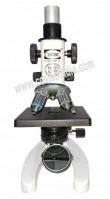 Junior Medical Microscope (Moveable Condenser) : Same as VN-5 but condenser movable by rack and pinion. With this movement of condenser, intensity of light can be increased and decreased according to the high power and low power objectives for better contrast and image. Packed in Thermobox